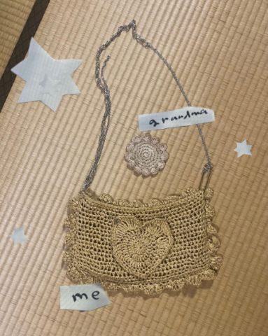 参院選の特番をみていた晩に即興で編んだバッグ。意識していないつもりだったけれど、おばあちゃんが編んだコースターにどこか似ていた。どうしてだ。